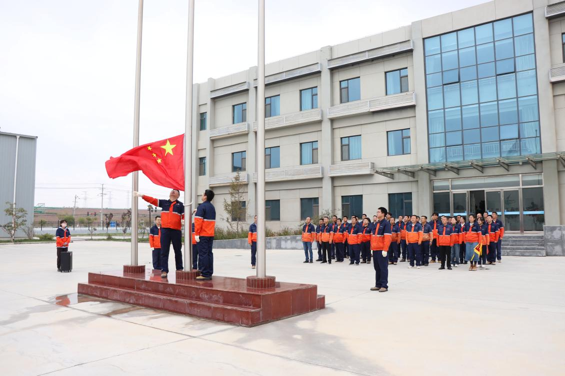 9月30日,化工热电公司广场上,五名旗手昂首阔步,全体职工庄严肃立,伴随嘹亮的国歌,目送五星红旗冉冉升起,迎风飘扬。