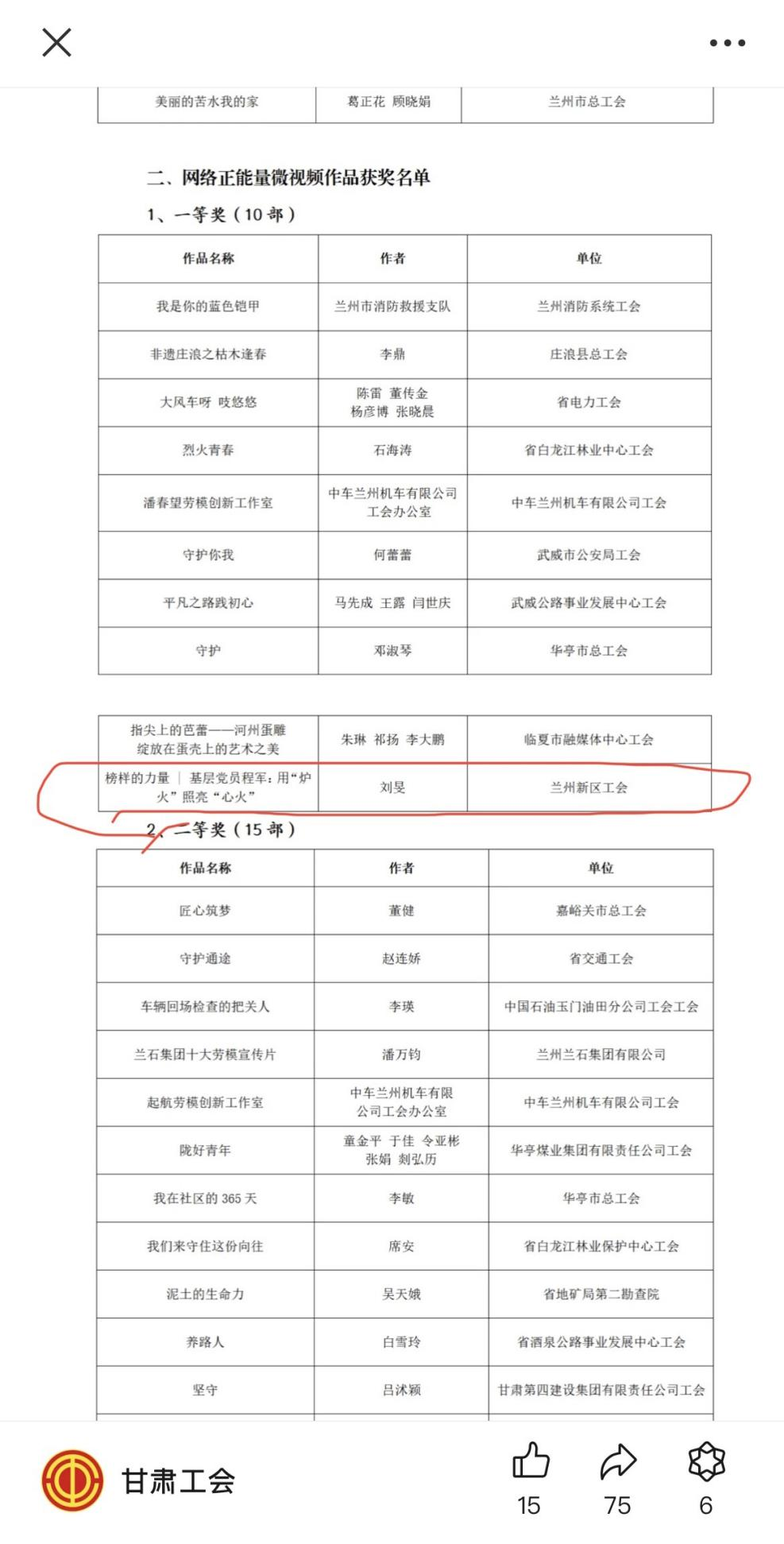 近日,甘肃省总工会和省委网信办联合开展的2024年“网聚职工正能量 争做甘肃好网民”主题活动获奖作品名单公布,由化工热电有限公司工会主导拍摄,mansion88明升工会监制审核,经兰州新区工会推荐的视频作品《榜样的力量 | 基层党员程军:用“炉火”照亮“心火”》在甘肃省1515部优秀作品中脱颖而出,荣获一等奖。