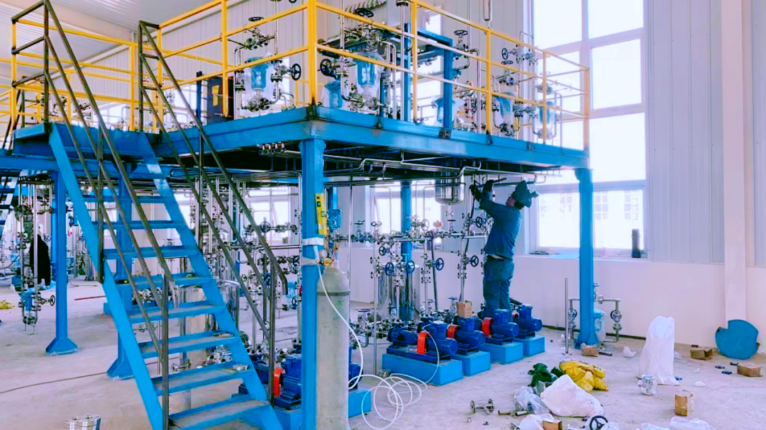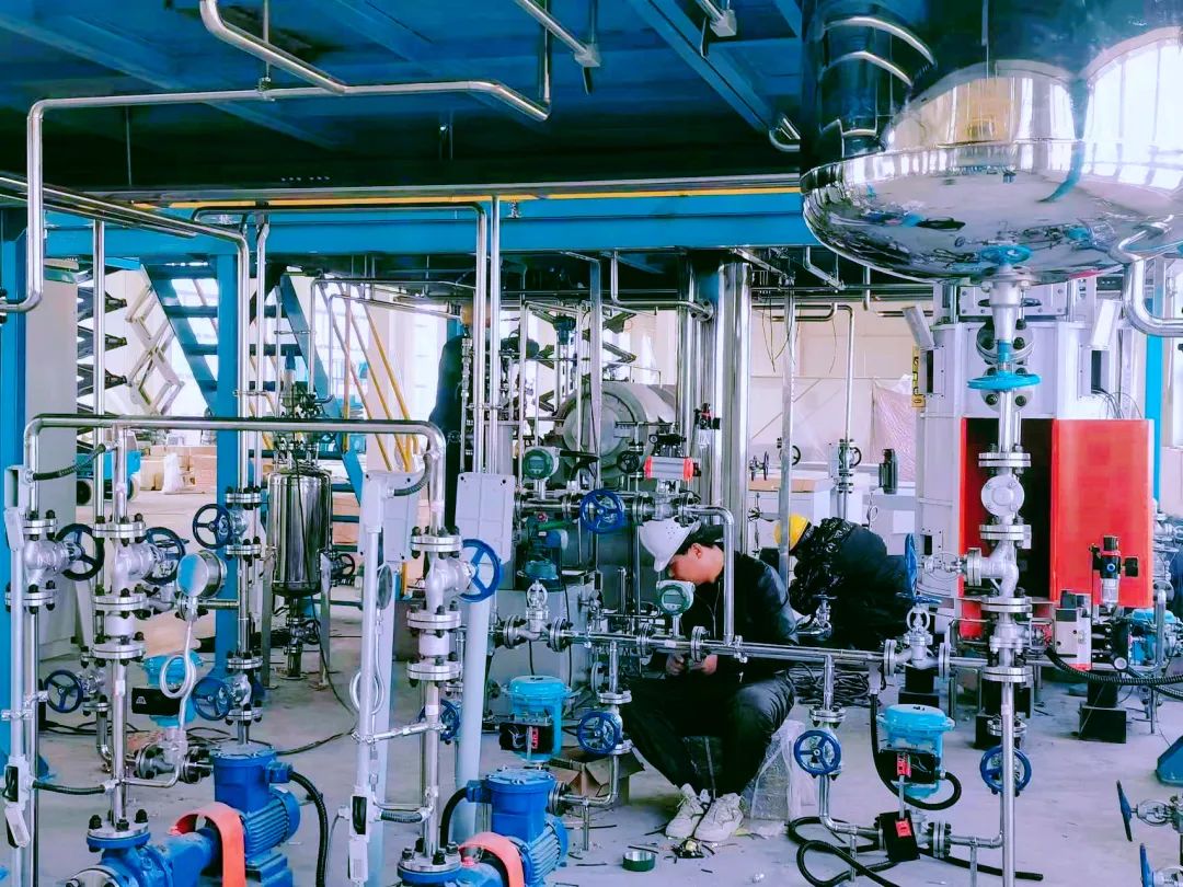 目前,实训基地装修工作已完成,16套危化特种作业实操考核装置框架搭建、设备布置、管线连接、仪表点及主线槽安装、分线槽镀锌管施工、线槽布线等均已完成,3套化工单元操作装置框架搭建、设备布置、管线连接、管道满焊已完成,已完成安装总施工进度的80%。