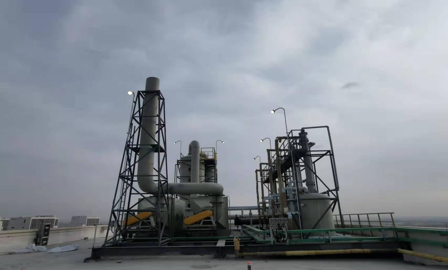 甘肃朗玛旗云科技有限公司医药农药新材料中间体生产车间是化药原料生产车间,车间生产过程中挥发的有机溶剂和物料粉尘对环境有较大的污染,根据环保部门要求,此类气体需要收集后经过有效处理才能排放。因此车间废气处理工作是重中之重,为确保未投产车间废气处理工程顺利实现既定目标,项目部进行细致周密的施工准备。施工期间,项目部技术人员、业主在现场加强协调、监督和指导工作,建筑工人们冒着严寒加紧作业,确保工程进度,为项目顺利完成进一步创造了条件。