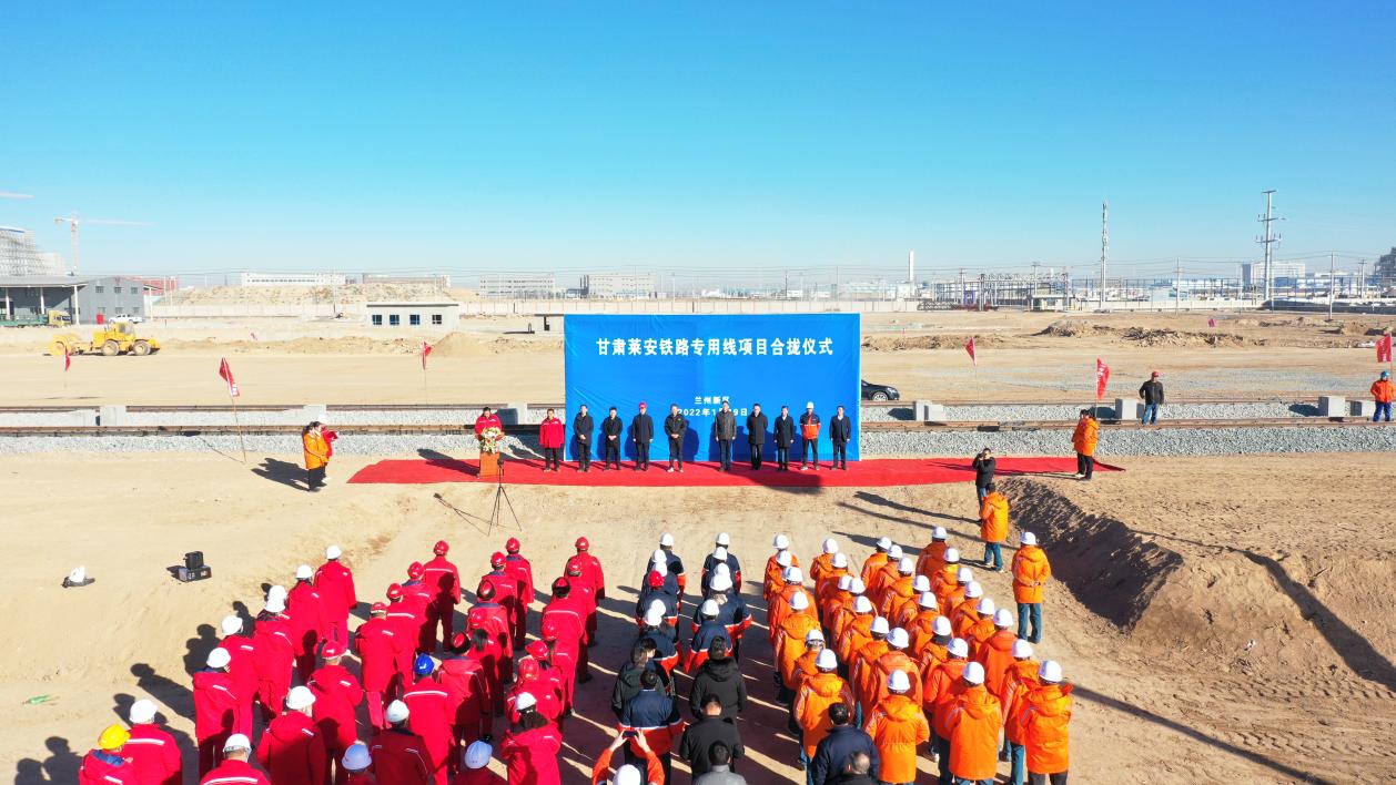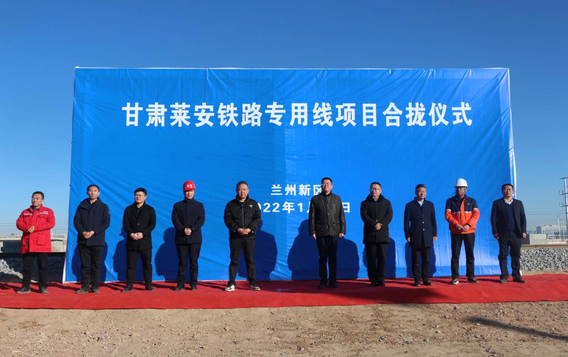 2022年1月19日上午10时,在化工物流园货场举行甘肃莱安铁路专用线项目合拢仪式。兰州新区mansion88明升总经理姜锦、兰州新区商投集团总经理王坚民及中铁二十一局、甘肃莱安能源有限公司领导出席仪式。