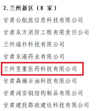 近日,省科技厅公布2022年度第二批甘肃省科技创新型企业名单,兰州新区专精特新化工科技有限公司产业孵化器内的入孵企业兰州昱重医药科技有限公司成功上榜。此次全省共有163家企业通过认定,其中兰州新区8家企业。