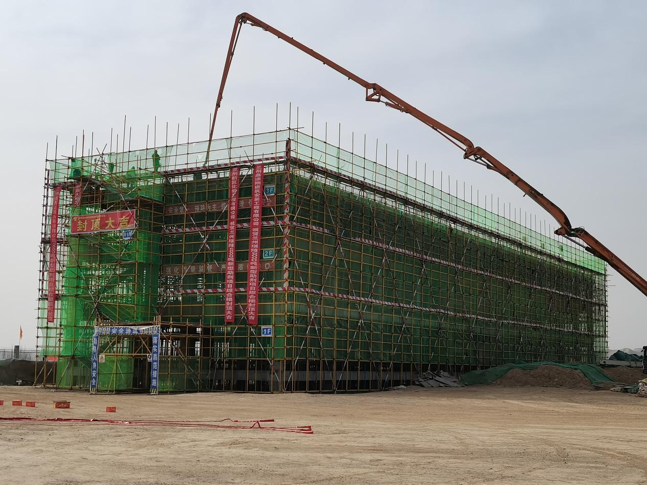 工程公司:兰州瑞隆高新材料有限公司5000吨新型助剂项目综合办公楼主体结构喜封金顶