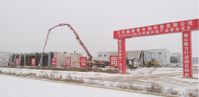 兰州鑫隆泰生物科技有限公司年产2000吨/年吡蚜酮和副产品建设项目是新区绿色化工园区首批招商引资项目,该项目自2019年10月18日开工建设以来,兰州新区化学工程有限公司组织精兵强将,科学部署,超前规划,制定了详细的日、周、旬进度计划;优化了主、辅工程的衔接配合;严格控制工期节点,仅用两月,完成三个车间、五个仓库、储罐区、主控室、循环水池等16个单体的施工,并将力争明年初春完成所有单体的施工任务确保顺利投产。