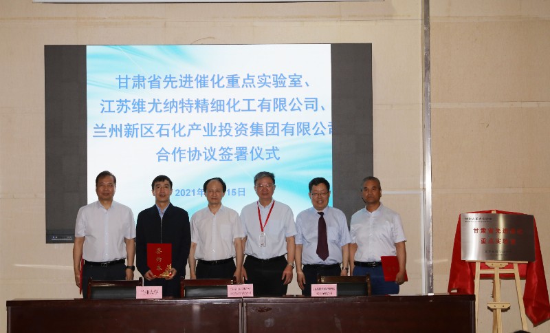 6月15日上午,兰州大学校长严纯华、兰州大学外聘院士李灿、甘肃省科学技术厅副厅长朱晓力、江苏维尤纳特精细化工有限公司总经理蔡则发共同在兰州大学为甘肃省先进催化重点实验室揭牌,聘请李灿院士为实验室主任。参会嘉宾、教师及学生150余人见证了揭牌仪式。