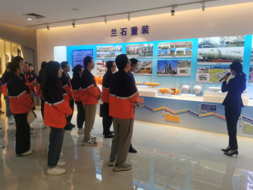 在讲解员的指引下,全体人员走进兰石集团展览馆,参观了解了企业发展历程、主营核心业务、能源制造全产业链布局、科技创新成果及在氢能、光伏等新能源新材料方面发展情况。重点了解了兰石集团推动党建融入生产经营、党支部标准化建设以及特色品牌创建等方面的特色经验做法,学习感受了高质量党建、优秀企业文化助力生产经营提质增效的经验做法。参观过程中,双方围绕基层党建共建提升、相关业务合作共进等进行了交流。