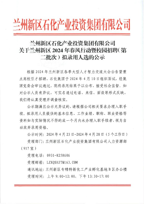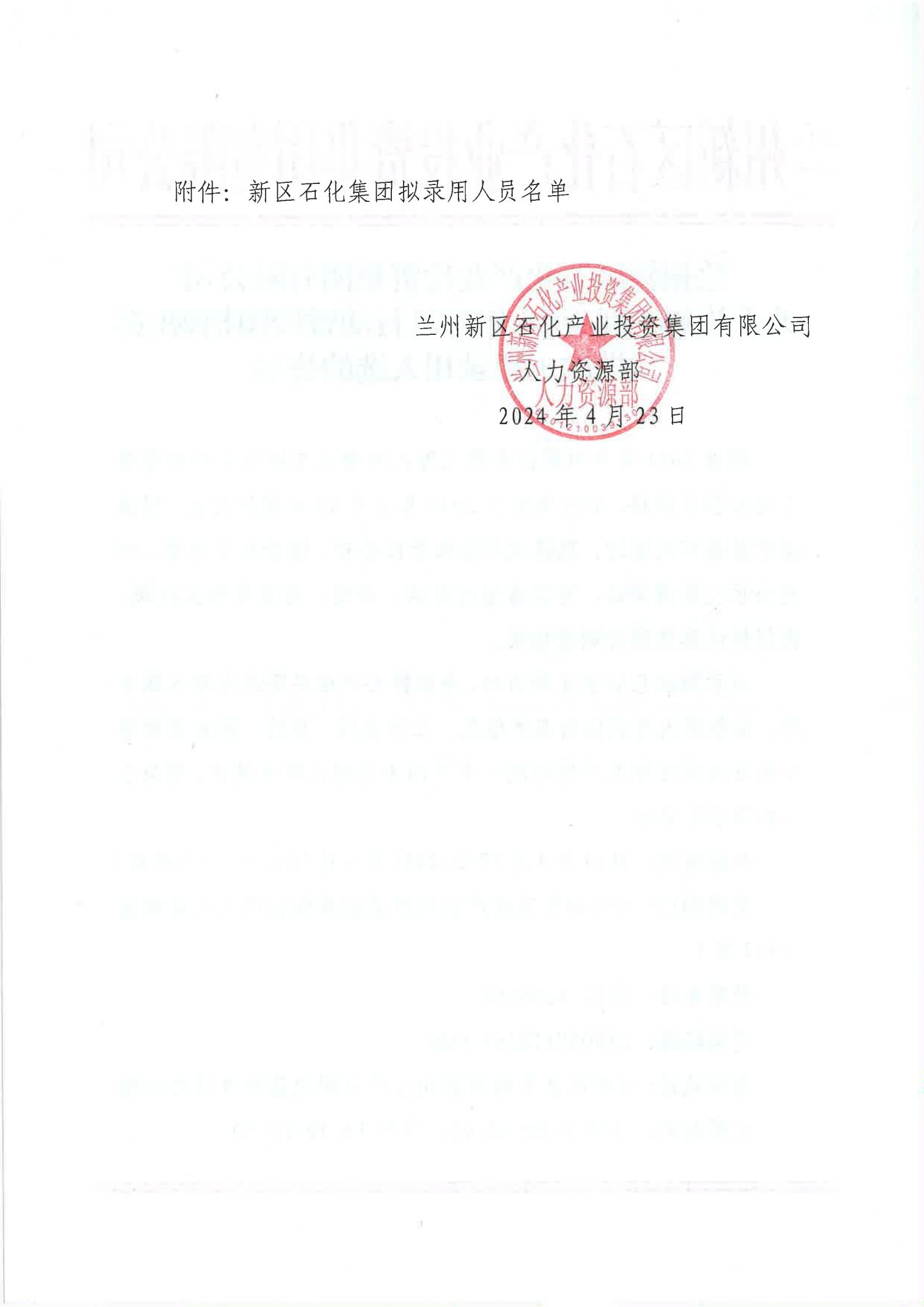 mansion88明升 关于兰州新区2024年春风行动暨校园招聘(第二批次)拟录用人选的公示